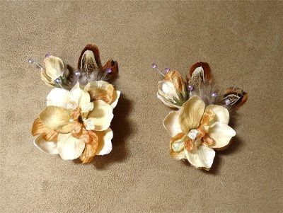 I can't believe it! I found the perfect fingerless lace gloves today at Claire's boutique. The only problem is that they were bright white, and my dress is dark champagne. No problem, right. Came home and tea stained them, and they are...