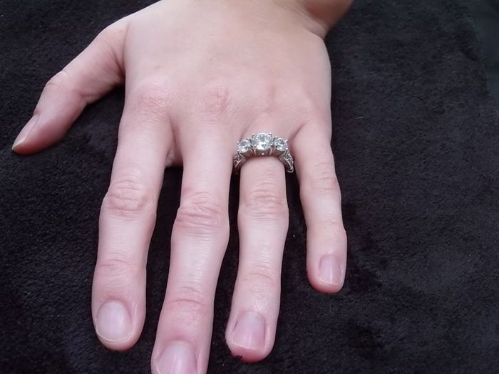 When we first got engaged, and we had a baby soon after, his mom lent us her old engagement ring. It was nice, but I really wanted my own. This Christmas, I got my own ring!! It's a stunning platinum setting, that looks very vintag-y.