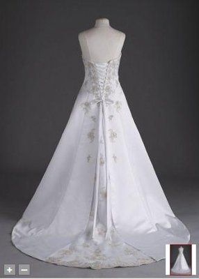 The picture does it no justice, but I am also thinking about adding some light beading to the neckline. I paid $27, including shipping. IVORY & POOL (BLUE)and there's a flower, not sure if you can see it but that will be pinned on the sash.