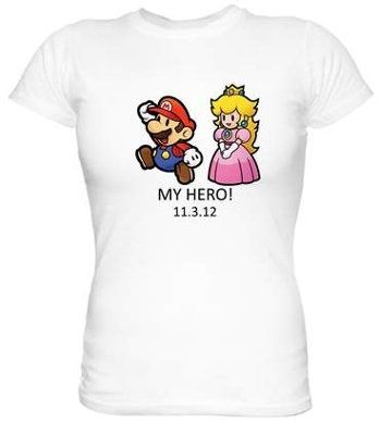 I made FH this shirt "GAME OVER" and he would love to wear it as we are leaving the reception and dashing off to our wedding night. I want to wear an equally witty "mario brothers" inspired T-shirt, but I'm stuck. I already have several different...