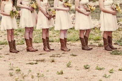 i am having a country theme wedding. my brides maids will have shorter dresses and wearing boots. i just cant find a dress that will go with a country theme yet still formal=/