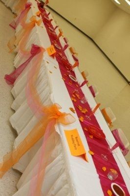 So my wedding colors are... Bright pink (fuschia), Bright orange (tangerine), & Bright yellow. My mom went & bought tulle in each of those colors to decorate the pews at the church with them. I don't know if i should alternate like pink, orange,...