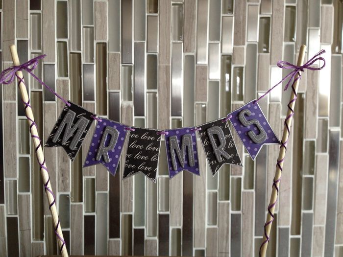 Just showing off my cake topper. All that is left is to find the right size "&" stickers and it will be complete.