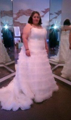 Show me your dress and then the dress on the model! I really never like the dresses on models! I haven't seen one model that looks better than the bride actually wearing it! Here is mine! Sorry for the crappy cell phone quality!