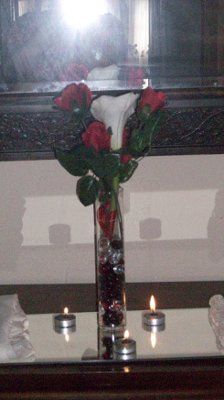 i think my epic battle with centerpieces are over! finally found something that makes me happy after spending weeks at the craft table. now the venue is giving us round mirrors but this is what i had.