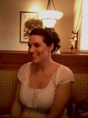 So here are some pictures of me from my first dress fitting. The dress needs steamed so don't judge the wrinkles. I am going to have the cap sleeve be removable so I can wear them for the ceremony, and then take them of for the reception because...