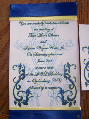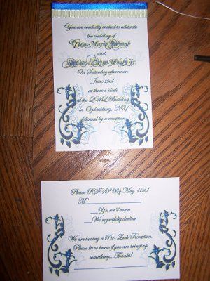 Here are my invitations. My FH made up the design on Photoshop and I added the ribbon. There is also a pic of our RSVP cards. I would like to know if anyone thinks it would be better to just have the top/or bottom ribbon instead of both on the...