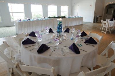 Hi. First two pics is an example of our venue without chair covers (standard). The chair covers will cost us an extra 1,000. The 3rd pic is an example with the chair covers. What do you think? Our colors are turquoise and purple....
