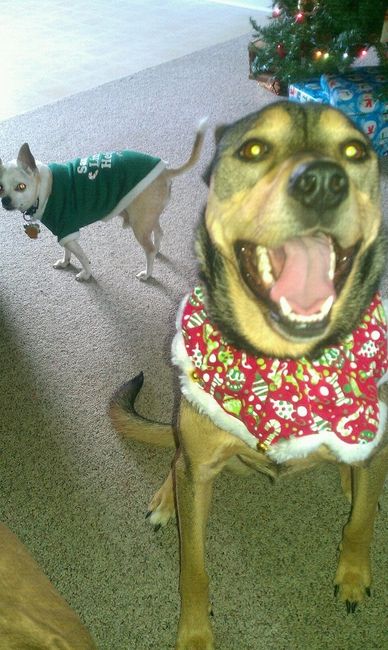 I love christmas time with my babies! Took Clyde for a walk tonight to see the Christmas lights and he had so much fun (: Let's see your Christmas urbanites!
