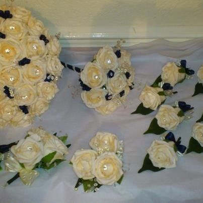 I'm looking for inspiration, when it comes to flowers I'm pretty dumb. lol The only flowers I can easily identify are roses, calla lilies and hydrangeas. My colors are light blue, ivory and champagne. HELP! What's a hand tied bouquet?