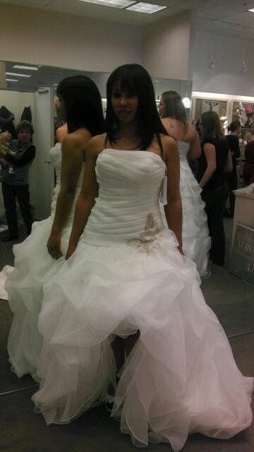 I went to a private boutique and one of their policies was no pictures in the dress until AFTER a purchase. Well the dress is purchased, but I never went back to take pics as I kinda want to have that same reaction all over again that I had...