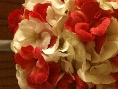 My first true DIY for the wedding. The pink flowers kind of look red, but they're pink. I'll also probably add a crystal bead string from the bottom. Oh, and please excuse the ugly door backdrop.