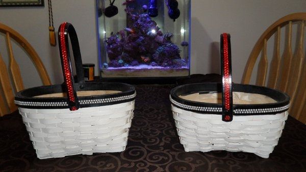 Ok, many of you probably already saw my other post with some DIYs, but here is our newest ones. We bought straw baskets from Michaels for about $5 and painted them. In this pic is also our DIY I Do. For those who didn't see my other post, my fiance...