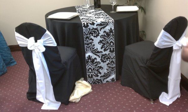 My FH and I are debated which linens to use. Our wedding colors are red,black and white. We are having red lighting on each of the tables (centerpieces) so that is our pop of color. We like the black linens since our wedding is formal, but my mom...