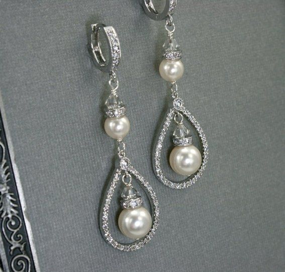 I am trying to figure out the perfect necklace and earrings to go with my wedding dress. I attached a picture of my dress, but I can't figure out what necklace or earrings go with it. I am looking for a pair with pearls and rhinestones/diamonds in...