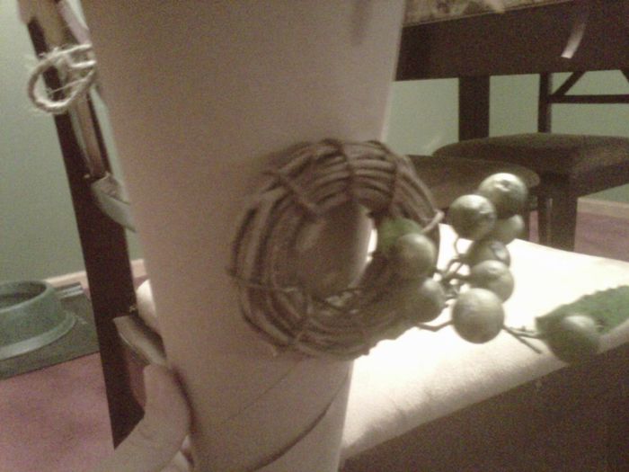I can't remember what this is called and it's not done. It will have just married stenciled on it. My question is which looks better? With the ribbons and twine hanging in between the triangles or without? I was also thinking of putting a small...