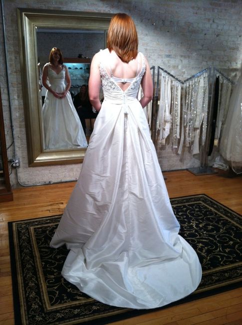 I went to a private boutique and one of their policies was no pictures in the dress until AFTER a purchase. Well the dress is purchased, but I never went back to take pics as I kinda want to have that same reaction all over again that I had...