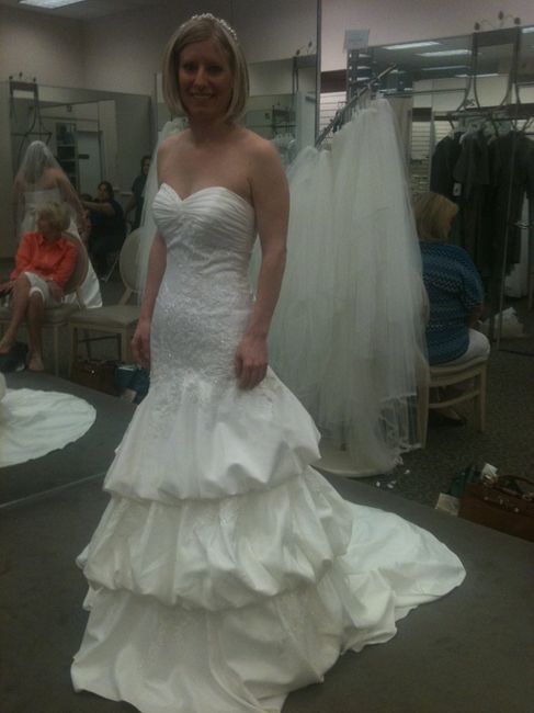 I went to a private boutique and one of their policies was no pictures in the dress until AFTER a purchase. Well the dress is purchased, but I never went back to take pics as I kinda want to have that same reaction all over again that I had...