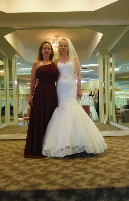 I went to a private boutique and one of their policies was no pictures in the dress until AFTER a purchase. Well the dress is purchased, but I never went back to take pics as I kinda want to have that same reaction all over again that I had...