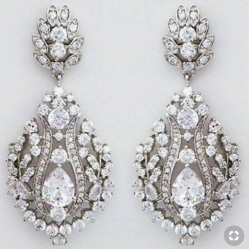 Pictures of my dress are below. Wedding is late August, outdoors at a vineyard. Im thinking just drop diamond earrings? Should I do a necklace too? I think with the sequins and neckline a necklace is just too much. Wearing hair half up/half down,...