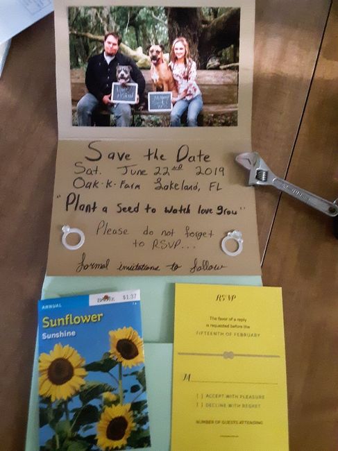 2597 days agoI personally hand made our STD and used some of our engagement pictures. We incorporated our babies into it since they can't be in the wedding There are 2 pictures. The one that says "Save the Date" is on the front. Engagement Pic with pups!!...