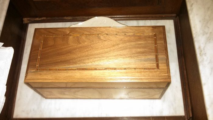 My FFIL made us our wine box, he is so talented it means even more to me now that he made it. He is getting a brass plaque with our names and date for it as well. One pic is with the flash and one is without fyi.