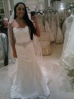 So my dress came in and I finally picked it up!! It has no crenaline under it yet but I'm goijg to put two of them to make it a dramatic bottom and I may make the top sweatheart neckline..not sure yet bc u don't wana take away from the detail!