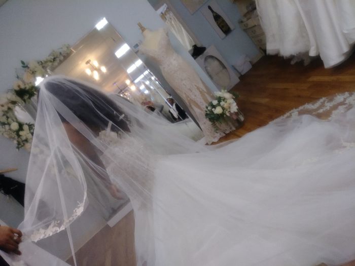 I went veil shopping with my FSIL today! I had such a hard time deciding between these two veils and ended up going with the one I was originally drawn to, the one on the left, first picture is a close up of the detail and the last picture is the...