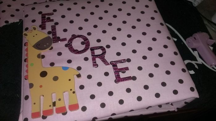 Almost done going to put animals inside the photo album and put the d.o.b on the side its for my cousins first baby what do u think I hope they like it they did a safari theme couldn't find animal print that's why I did the polka dots