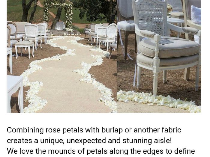 Found this idea on pinterest today. Ive been racking my brain trying to figure out the aisle decor for the past 6 weeks or so. Had a few trials that I just didn't like. I already have a burlap aisle runner, so never thought of adding rose petals...