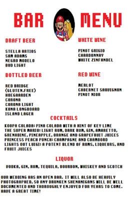 To not mention the extent of your open bar to your guests? FMIL is afraid that if guests come with the knowledge that liquor is included in our open bar. We didn't plan on listing every beverage option available for free, we intend to just state what...
