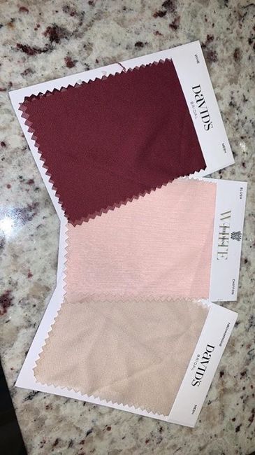 ...show me your color schemes! Our colors are oxblood, dusty rose, blush pink and white!