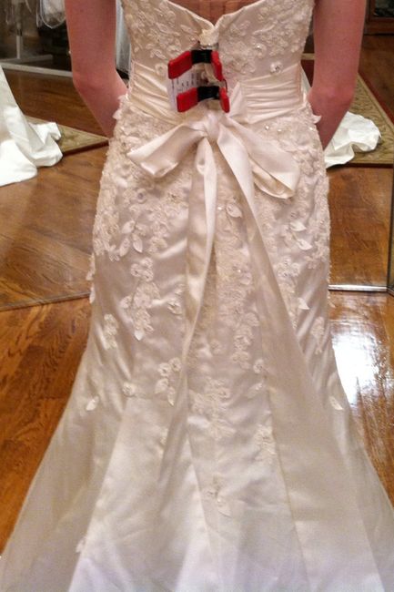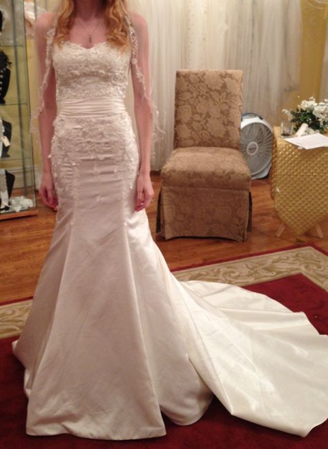 Hi All! After a hard decision, I said yes to the dress! The shopping experience wasn't so great because I had an awful, awful consultant, but im very happy with my dress. Its perfect! I covered my face cuz I had such a strange look going on. Lets see...