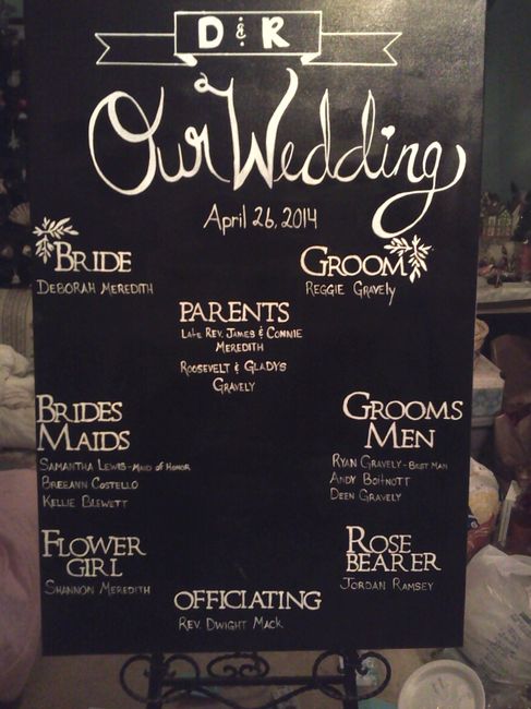 I liked the chalkboard programs but I couldn't really find one big enough so I just bought a canvas board and painted it black and free-handed with a paintbrush. (The main head titles I traced with a stencil and painted in - I was having a hard time...