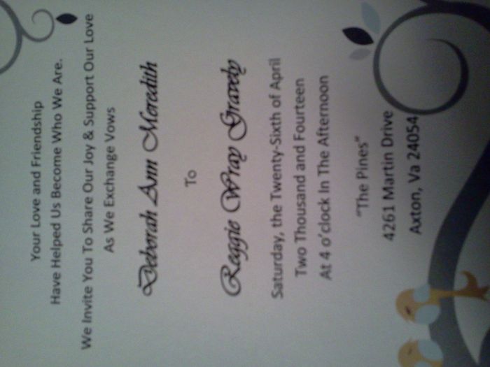 So these are my invitations - they are only 5x7 and I cut some practice paper to try and figure out the font sizes I needed since they have a border on them. My printer won't print that size paper (I guess since it feeds from the bottom it can't pick...