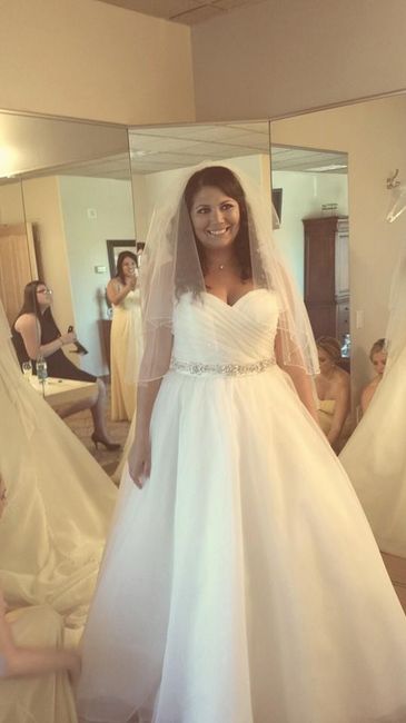 Hi All! After a hard decision, I said yes to the dress! The shopping experience wasn't so great because I had an awful, awful consultant, but im very happy with my dress. Its perfect! I covered my face cuz I had such a strange look going on. Lets see...