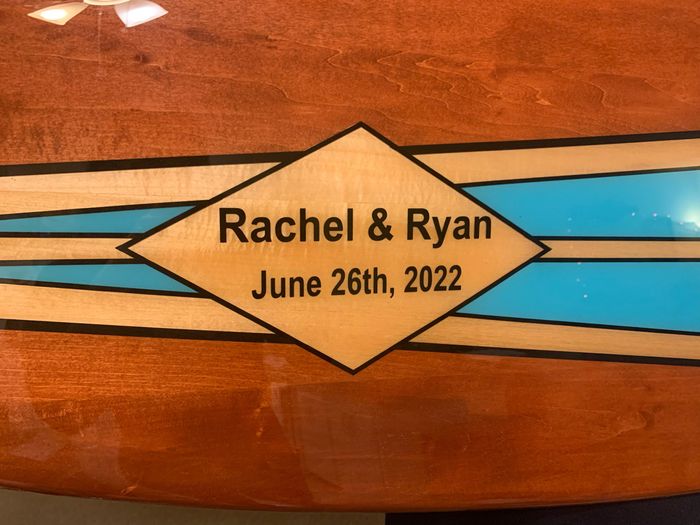 Hi, Everyone! After months and months of waiting, our custom surfboard “guestbook” finally came today! We wanted to do something more fun and memorable than a standard guestbook, so we are going to have our guests sign this at the reception so we can...