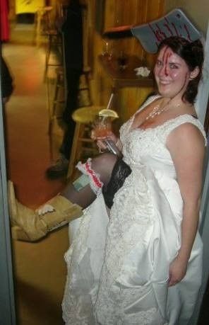 I just got my wedding dress from the cleaners (I haven't had it preserved yet because we are planning to do a "Trash the Dress" session w our dog next month). And I was thinking of dressing up as a "bride" for Halloween. I'm not going anywhere. I'm...
