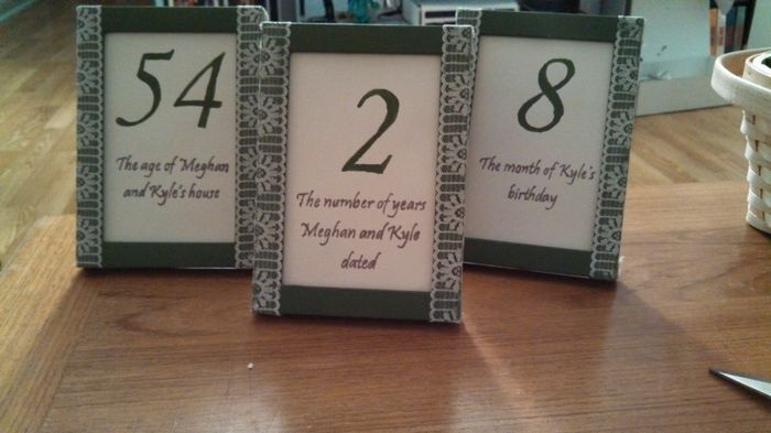 I'm so excited by how well my table numbers have turned out here is a picture of a few of them. As you can tell they are numbers that mean something to us from meaningful stuff (how many years we've known each other 14) to silly stuff (How many DVDs...
