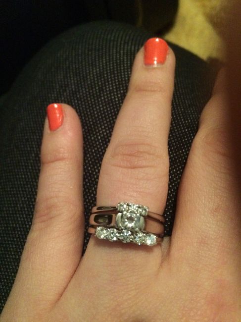 Here is mine! Traditional and classic, kind of like my guy The stone is so clear it's absolutely stunning in the right light (I've found that Starbucks is one of the best places to stare at my e-ring lol). The other ring is the wedding band I'd...