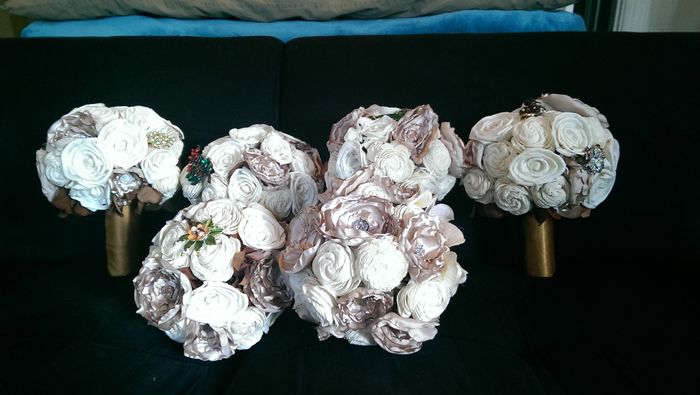 Alright, I have done a CRAP ton of DIY's. I haven't really posted all of them. So I thought I would create an epic post of my awesomeness..because, well I feel awesome. Here are the bouquets (I made fabric flowers, and used sola flowers) and...