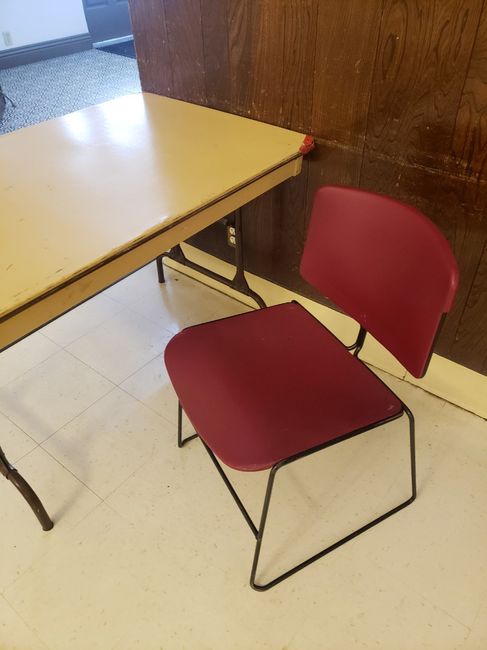 So my venue is a bit of a blank slate but one of the big advantages is it has all the tables and chairs we need included in the price...the bad news is...these are the chairs I hate these chairs...I hate these chairs SO much. I wanted to rent some...