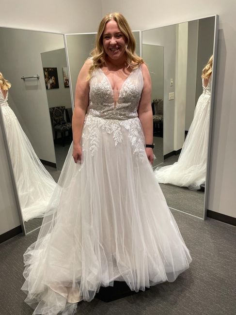 I just picked up my dress (that came in just two weeks after I ordered it!!!) and I didn't think it was possible, but I love it even more than when I bought it! It's a little big actually (what a great feeling) but being able to see what the dress is...