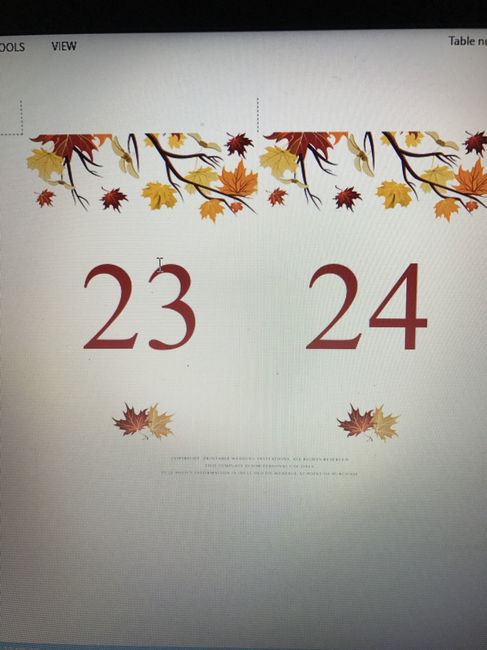 I purchased 2 templates from Etsy at $8 a piece for table numbers and place cards. FH said, you couldn't have designed that yourself? Well I could have, but finding the perfect graphic, placing it correctly, font color & size matching, etc. I would...