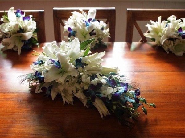Hello ladies and gents! I would like some ideas for my bouquets. My wedding colors are royal blue, black and silver. I've been trying to get ideas for the bouquets, but not having much luck. Blue roses are apparently only done artificially with dyes...