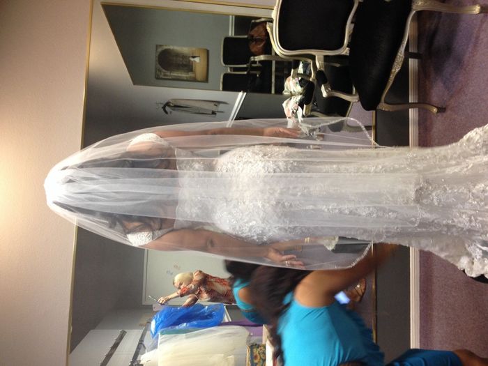 Hi All! After a hard decision, I said yes to the dress! The shopping experience wasn't so great because I had an awful, awful consultant, but im very happy with my dress. Its perfect! I covered my face cuz I had such a strange look going on. Lets see...