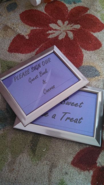 Today I did my table numbers and signs for the candy buffet and guest book. The table numbers have different nerdy couples on them (super heroes, the office, harry potter, HIMYM, Star Wars) The the guest book/ canvas sign Love is Sweet Take a Treat ...