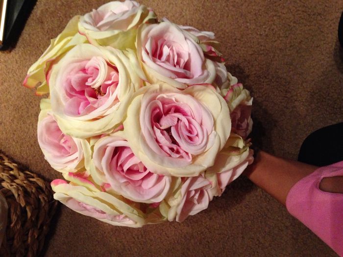 So I decided to go with flowers from afloral for my bouquet due to allergies and since I wanted to make my own brooch bouquet. This is without the brooches since I'm still collecting the ones I like. I like how it's looking so far!