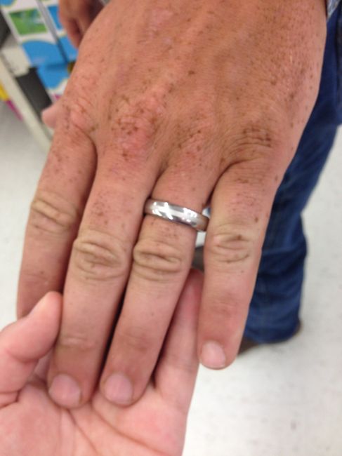 FH's wedding band. My FH has found a ring with piston's(part of an engine, if you didnt know) on it. I'm not crazy about it but he really likes it and since he didn't even want to wear a ring I'm okay with him having this one. The problem is it is...