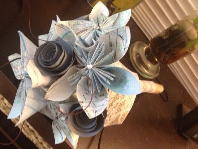 We originally weren't going to do flowers at all (would rather that money go to use elsewhere in the budget), but then I thought, why not make them?! I used to work in a flower store and am also unnaturally skilled at origami. The bridal bouquet...